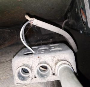 See the thicker cloth covered wire? The shielding is rubber and brittle as a Saltine cracker because of its age, this wiring can be dangerous