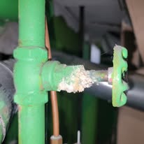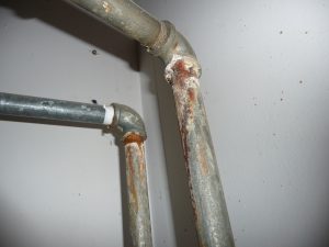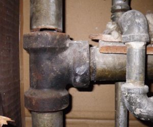 You can see where the galvanized steel water piping is rusting through at the threaded connection