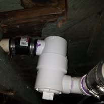 Makeshift way to run a bath mechanical fan to a roof vent, not professional – can still have condensation issues