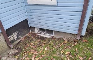 An example of a home with vinyl siding removed – old tar paper, multiple materials – weak spots