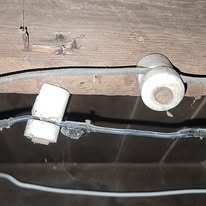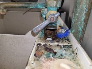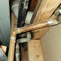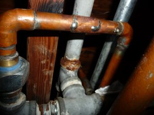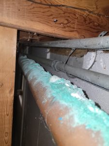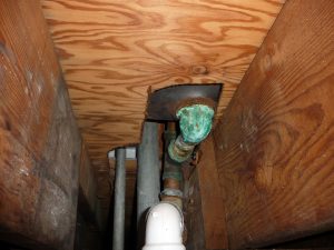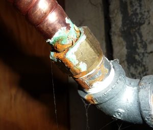Signs of a leak from above – SEE CORROSION ON THE COPPER PIPE?