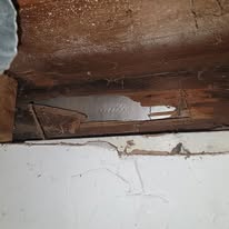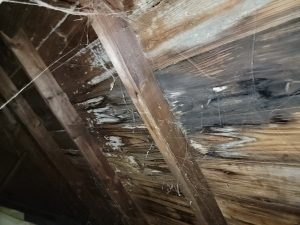 The decking of the attic was rotten through – just drywall there from the ceiling below