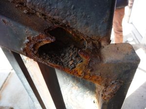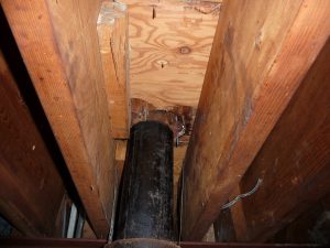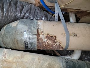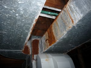 Most people aren’t looking in the crawl space – here’s some rusty duct work/openings that mess with the quality of the air you’re breathing