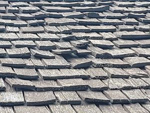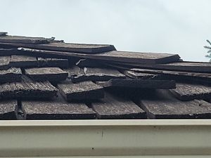 Wood shakes were in poor condition here you could see curling and warping and some were entirely missing, overall dried out